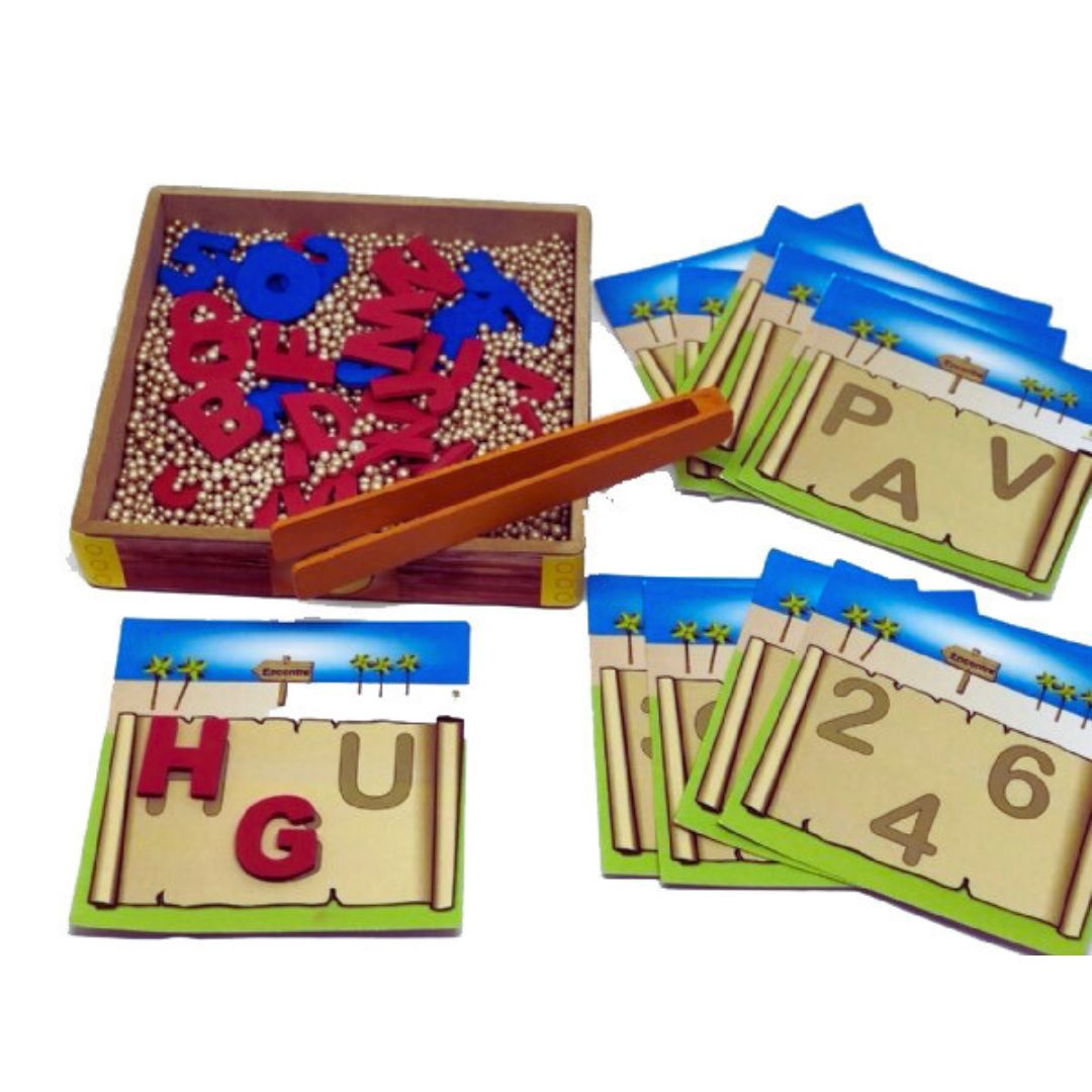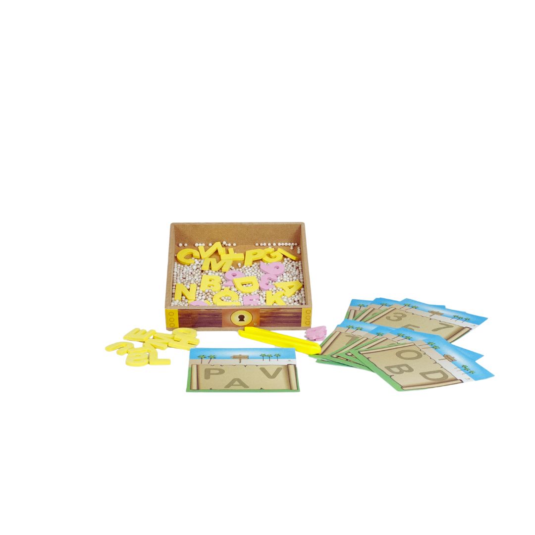O Baú do Tesouro é uma caça educativa que trabalha o reconhecimento de letras e números, além da coordenação motora fina. Ideal a partir de 3 anos.