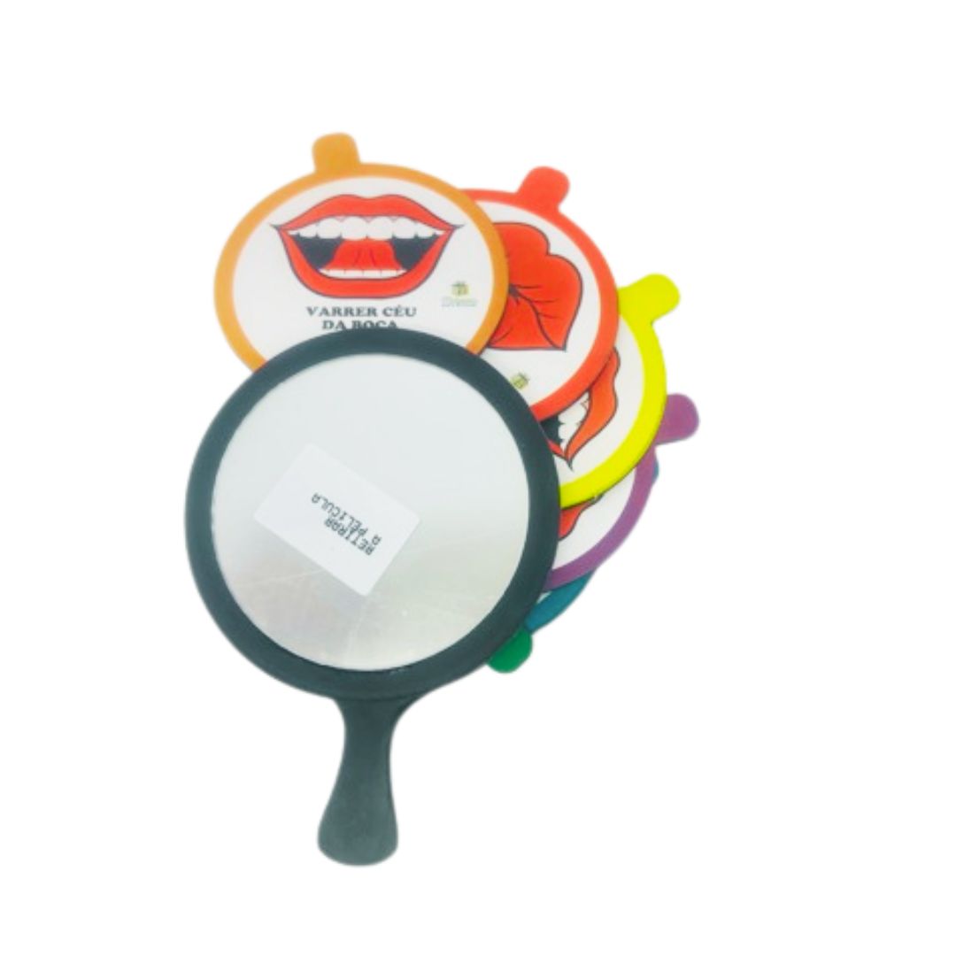 - 1 Espelho com ilustrações de exercícios de Motricidade Orofacial (MO).