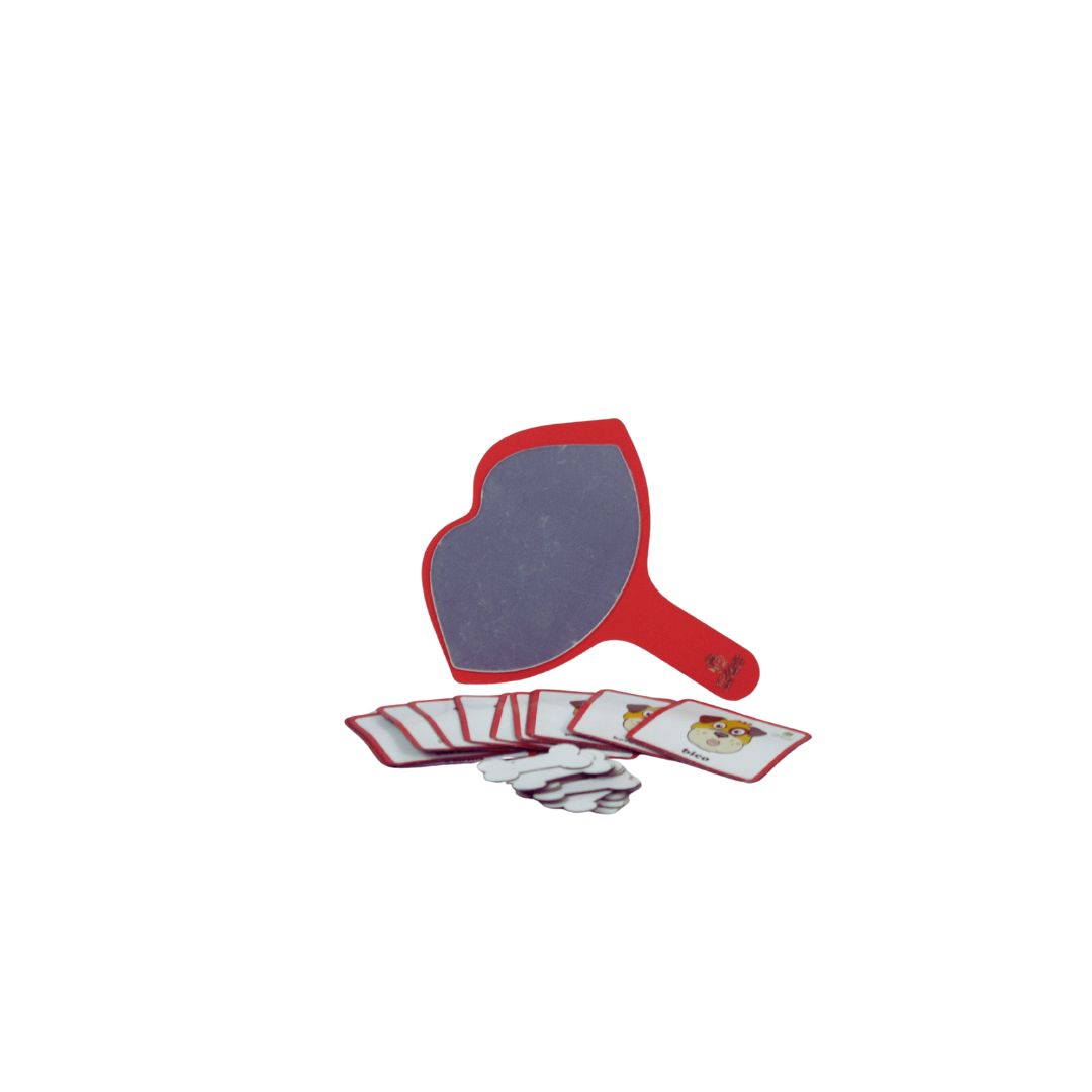A saber, o espelho em forma de boca é um componente crucial, pois permite que a criança observe seus próprios movimentos, o que facilita a correção e melhora a conscientização muscular. Assim, o jogo promove o desenvolvimento da motricidade oral e da articulação de maneira eficaz e visualmente estimulante.