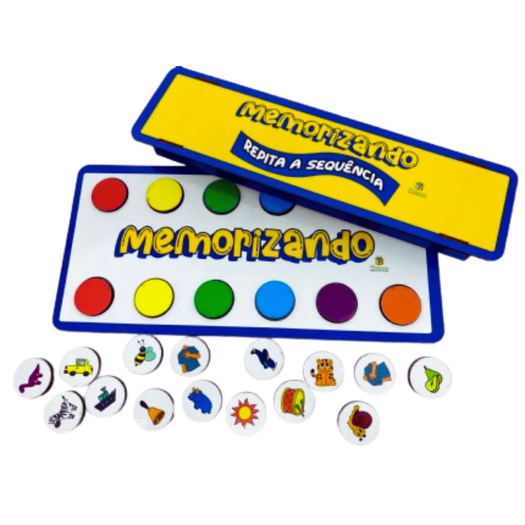 O Memorizando, da Materiais para Brincar, é um jogo excepcional para desenvolver habilidades cognitivas de uma forma envolvente bem como divertida. Pois o kit contém uma placa e fichas em MDF de diversas categorias, como cores, instrumentos musicais, dinossauros, animais e meios de transporte, tornando o aprendizado dinâmico e variado.