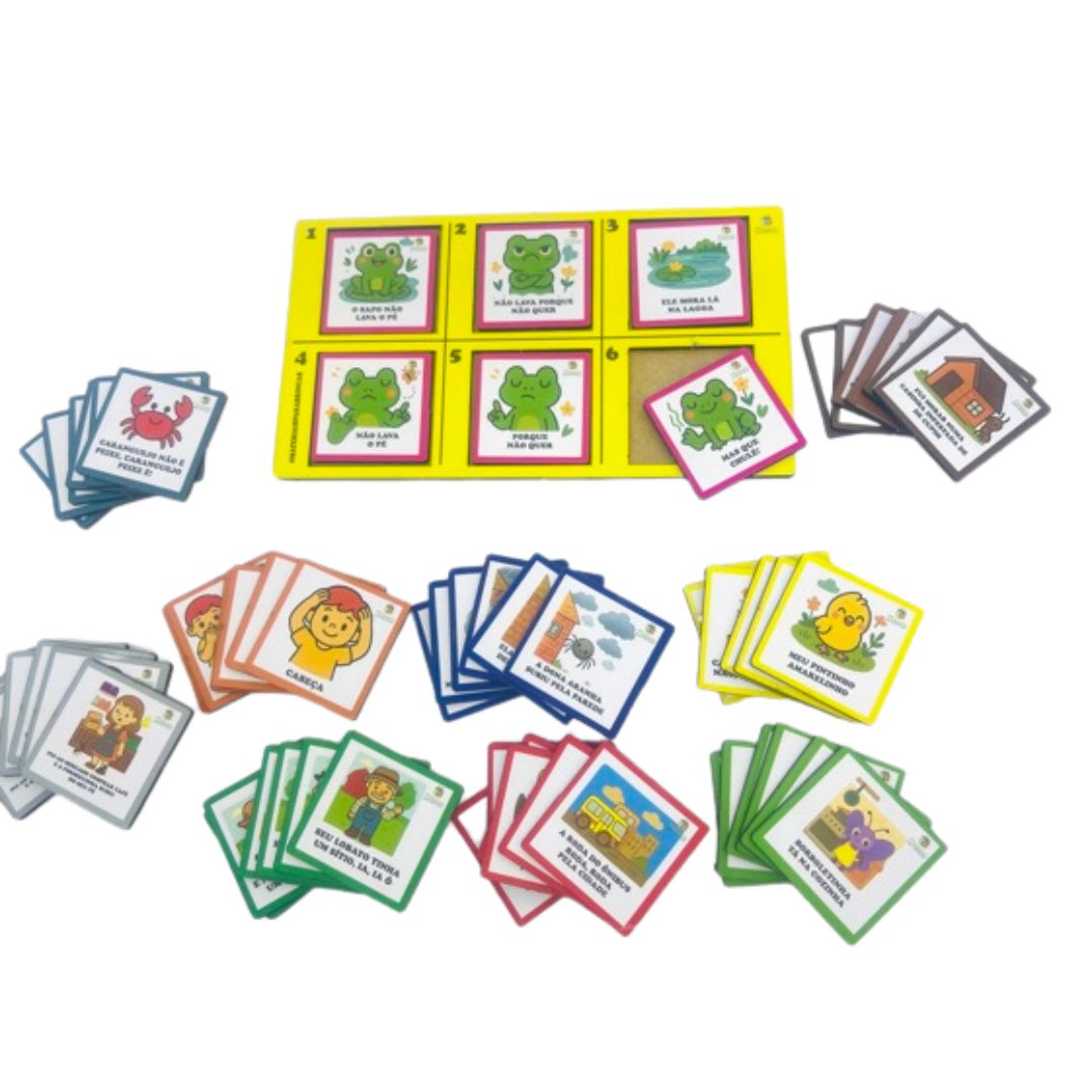 - Organização e Sequência: A placa e as fichas incentivam o raciocínio lógico e a ordenação.