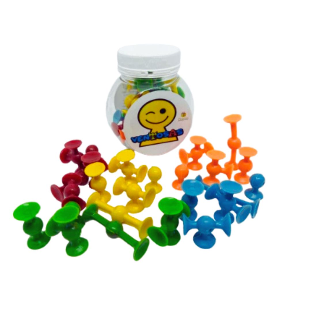 O kit Ventosas trabalha coordenação motora e habilidades sensoriais. Contém 25 ventosas em 5 cores e 5 formatos. Ideal a partir de 3 anos.